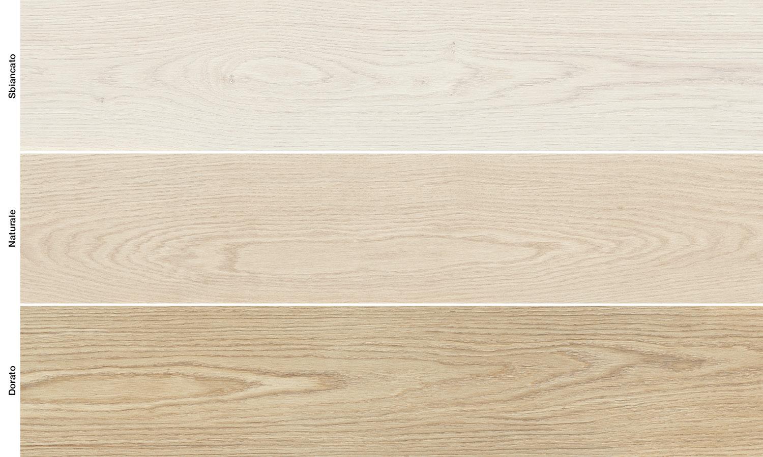 Distinguished by its elegance and vitality, the Dimore collection interprets oak with a new, original style. The collection in the 20x120 size comes in three shades: Sbiancato, Naturale and Dorato.