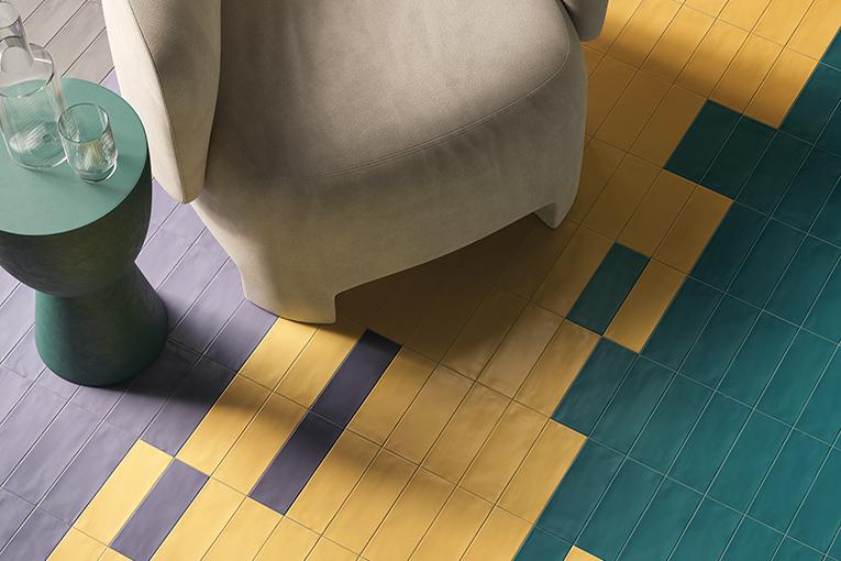 Available colours include Senape, Cipria, Petrolio, Amaranto and Lavanda, an extremely contemporary shade. They are the result of a significant expansion of the digital decoration system, with a total of ten print bars, making it possible to obtain trendy shades that are in high demand among architects and interior designers, but are scarcely or not at all available on the ceramic market. The design integrates influences from traditional majolica, whose craftsmanship underlies the gently undulating and softly imperfect surface. Alongside the natural finish, which is matt, but soft to the touch, the gloss finish further emphasises this link with the most typical ceramics of the Mediterranean tradition. The two surface finishes, which are available in all colours, are complemented by the Plissé decor with its distinctly three-dimensional structure.