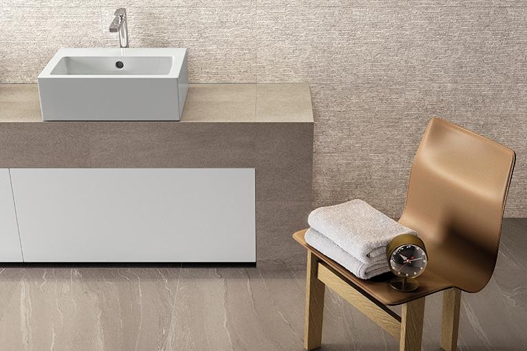 Porcelain Stoneware Ergon Stone Talk Stone Bathroom Taupe Minimal,sand Rullata,taupe Martellata Gallery Image | Emilceramica