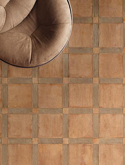 Fornace Provenza redefines the aesthetic of ‘cotto’. Thanks to a die-formed structure that creates a perimeter with the imperfections of hand-made brickware and a matching graphic design that emphasises the texture right to the surface’s limits, Fornace Provenza has none of the uniformity usual with industrial products and offers coverings with a distinctive architectural identity. The collection adopts a proportional grid based on a module of 37.5 cm, which generates the 37.5x37.5 square tile, the 18.6x37.5 half-size tile, the 9.1x37.5 strip tile and the Tegolo decor. The collection’s power is also derived from its three-dimensional and decorative tiles, including the Parentesi extruded ceramic module, the Intarsi – Nodo Mini, Nodo Maxi and Armonia – which combine graphic detail and material depth, and the Tessere mosaic, which breaks down the surface to adapt to complex volumes. The collection is completed by the distinctive Palazza installation layout idea, a contemporary reworking of the coffered pattern.