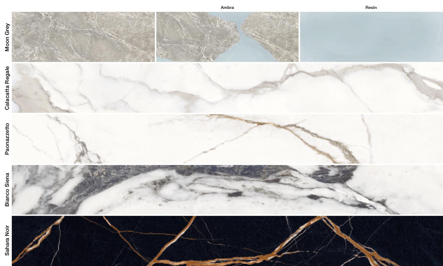 Designed on the basis of five of the world’s most exclusive types of marble, Unique Marble seeks out distinctive cuts and vein patterns as the inspiration for unusual, extraordinarily realistic designs and sizes. Natural effects and creativity combine: the vein patterns and depth of marble are enhanced by the tasteful contrast with the monochrome effect of the resin. The collection is conceived to provide the utmost architectural freedom with its combination of three complementary materials, with solutions in marble alone, in marble plus resin, as in the Ambra decor, or in just resin.