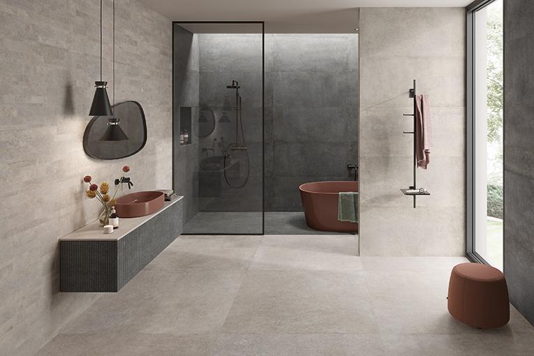 From structural material to icon of modern design: nowadays concrete is synonymous with minimalism and industrial style. With concrete-effect porcelain stoneware, the urban look finds new expression on floors and wall coverings, combining tactility with exceptional technical performance.
