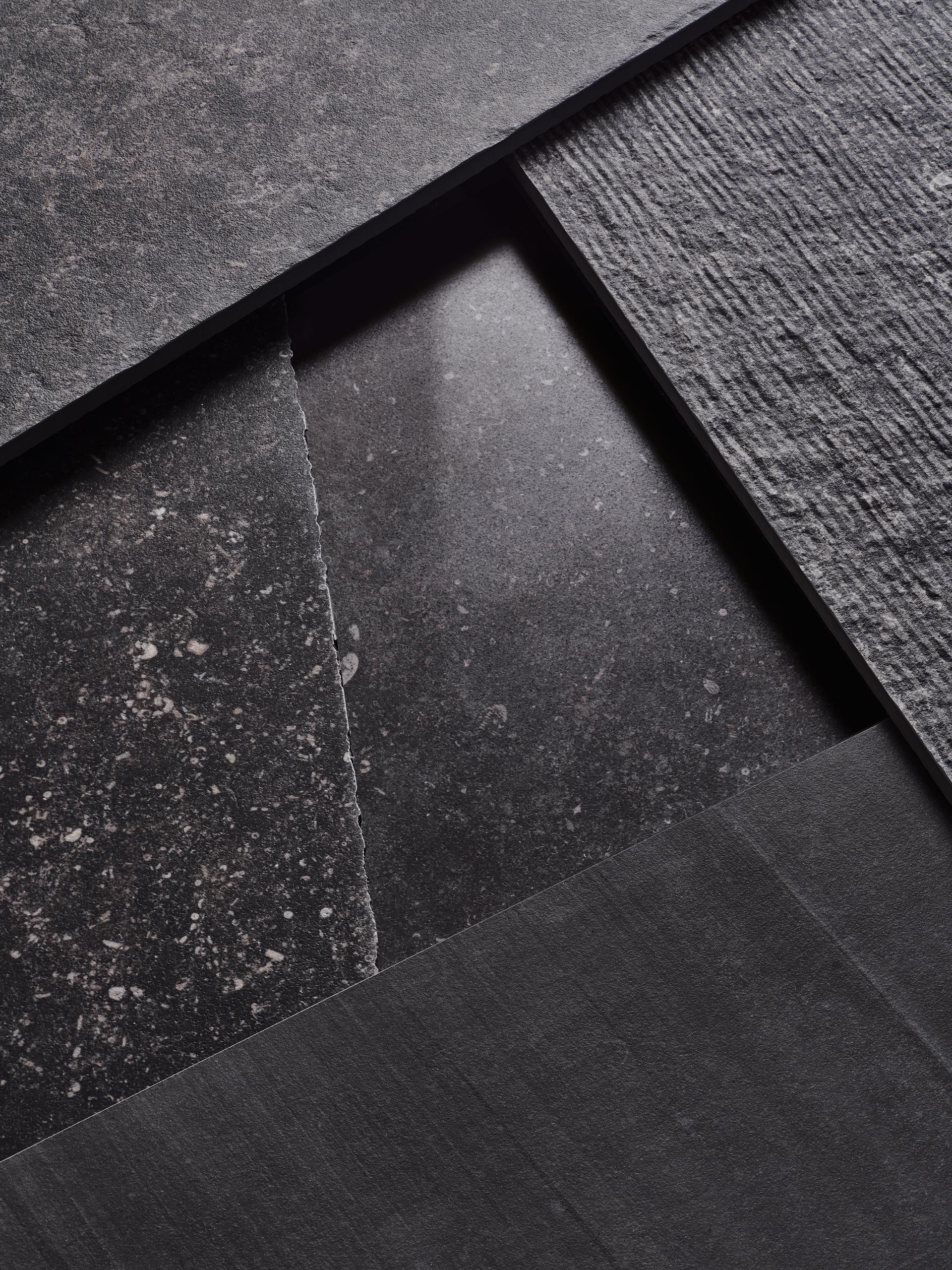 The truly original, special feature of this collection is the Brecciato version, in which the edges of the product seem to have been “broken”: this effect is created at the end of the production cycle, after the ceramic surface has been rectified. This mechanical procedure is performed on all 4 sides and evokes the effect of split stone, with edges shaped by the mason's hammer. This finish gives the surface the natural, realistic look of genuine stone, enhancing the collection's expressive power.