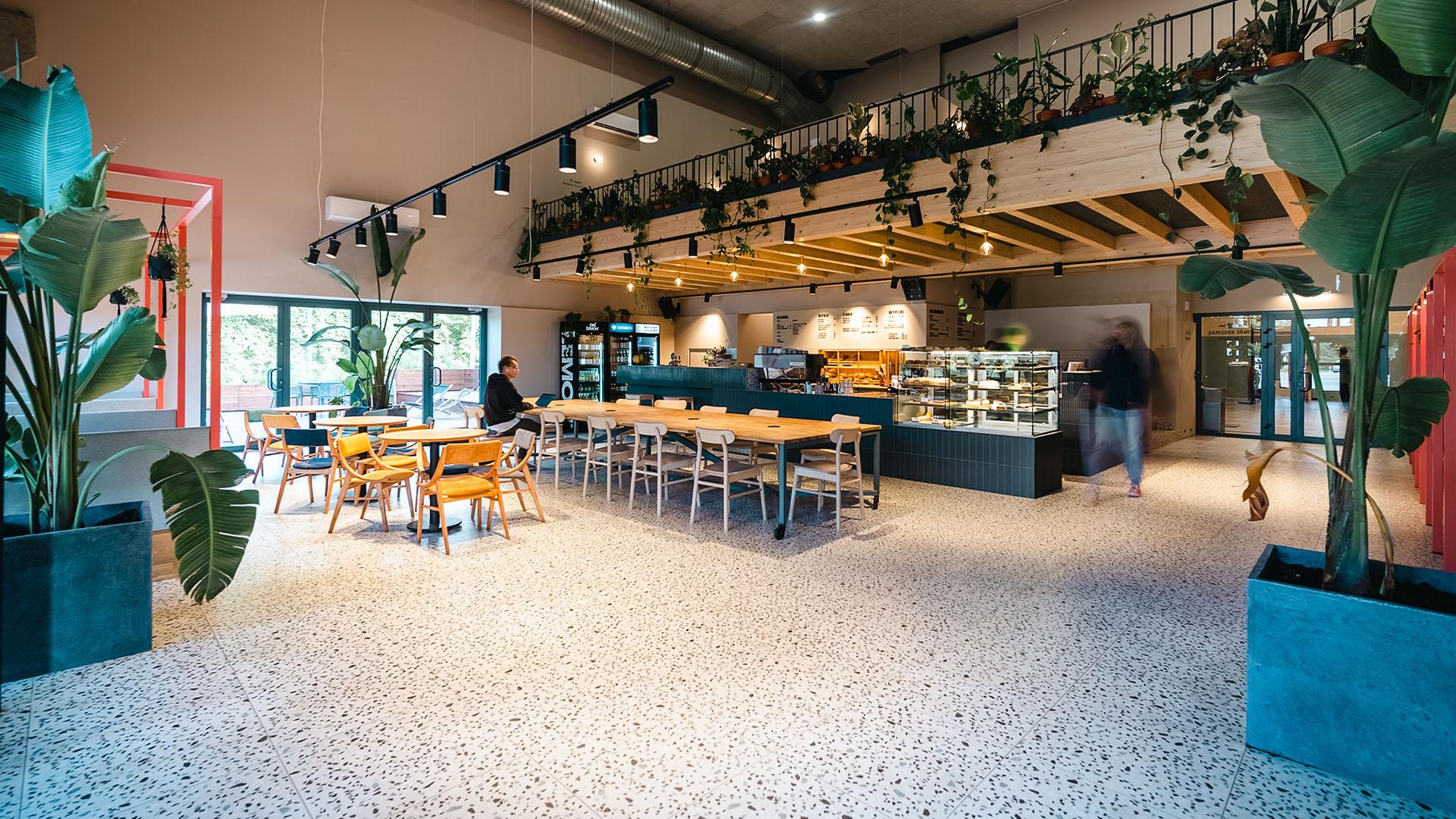The paving work involved the 1300 m² entrance and bar area of the new gym.