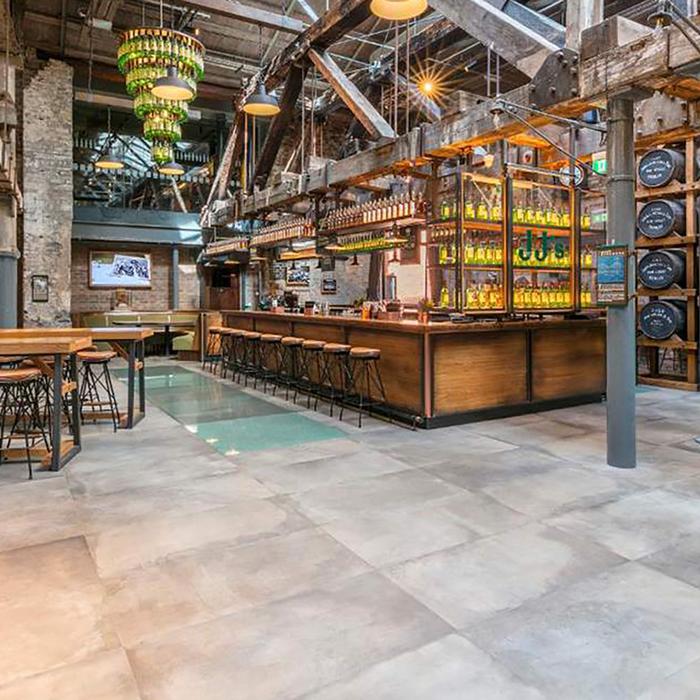 The aim of the project was to cover a 4,800m2 area with a material that guarantees aesthetic harmony and above all technical characteristics that meet the needs of a location that accommodates many people and is constantly exposed to materials that scratch the flooring, while also simplifying cleaning and sanitisation operations. Acustico 12, in the 60x120 cm size, fully met the requirements of the project, lending the floor great strength and elegance. The design is characterised by the choice of the Grey colour for the tiles, which gives the space a rustic, yet contemporary look. Following the renovation work, the Jameson distillery received the “World’s Leading Distillery Award” at the 2018 edition of the World Travel Awards.